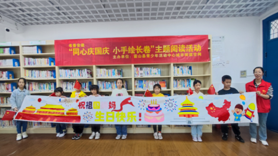 霍山县青少年活动中心城市阅读空间开展“同心庆国庆 小手绘长卷”主题阅读活动
